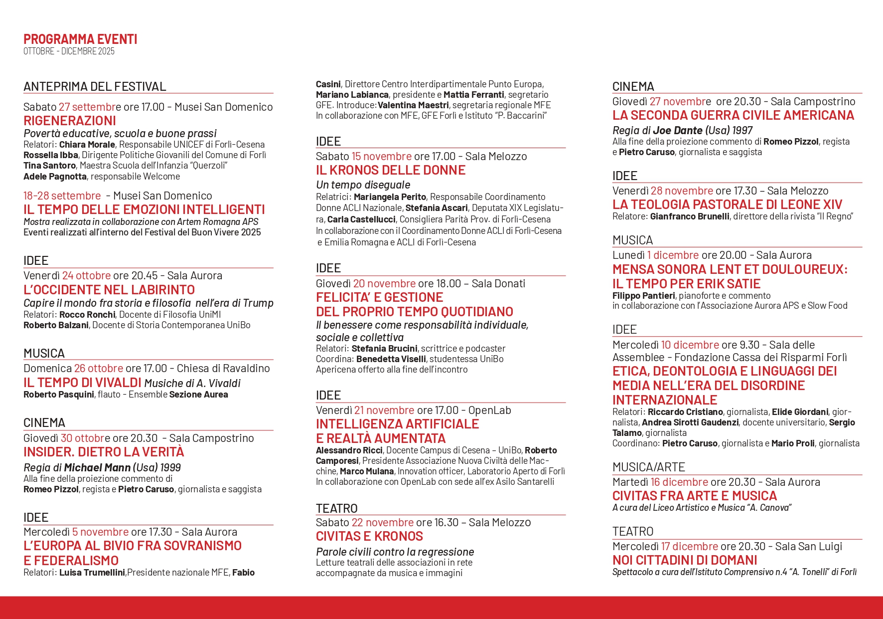 Al termine della conferenza verrà offerto un brindisi a tutti i partecipanti per festeggiare l’inizio del Festival L’Occidente nel labirinto XXII edizione